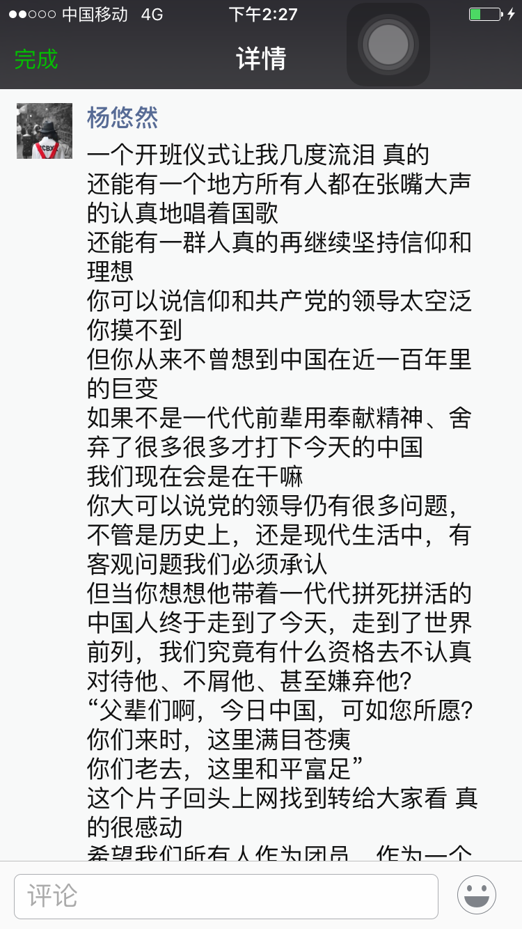 感动于我们的同学对党和国家能有这样的情怀。也相信新一期的党校学员也不仅学业优秀、品德优秀,而且有理想、有信仰,对党、对国家有热忱、有担当。
