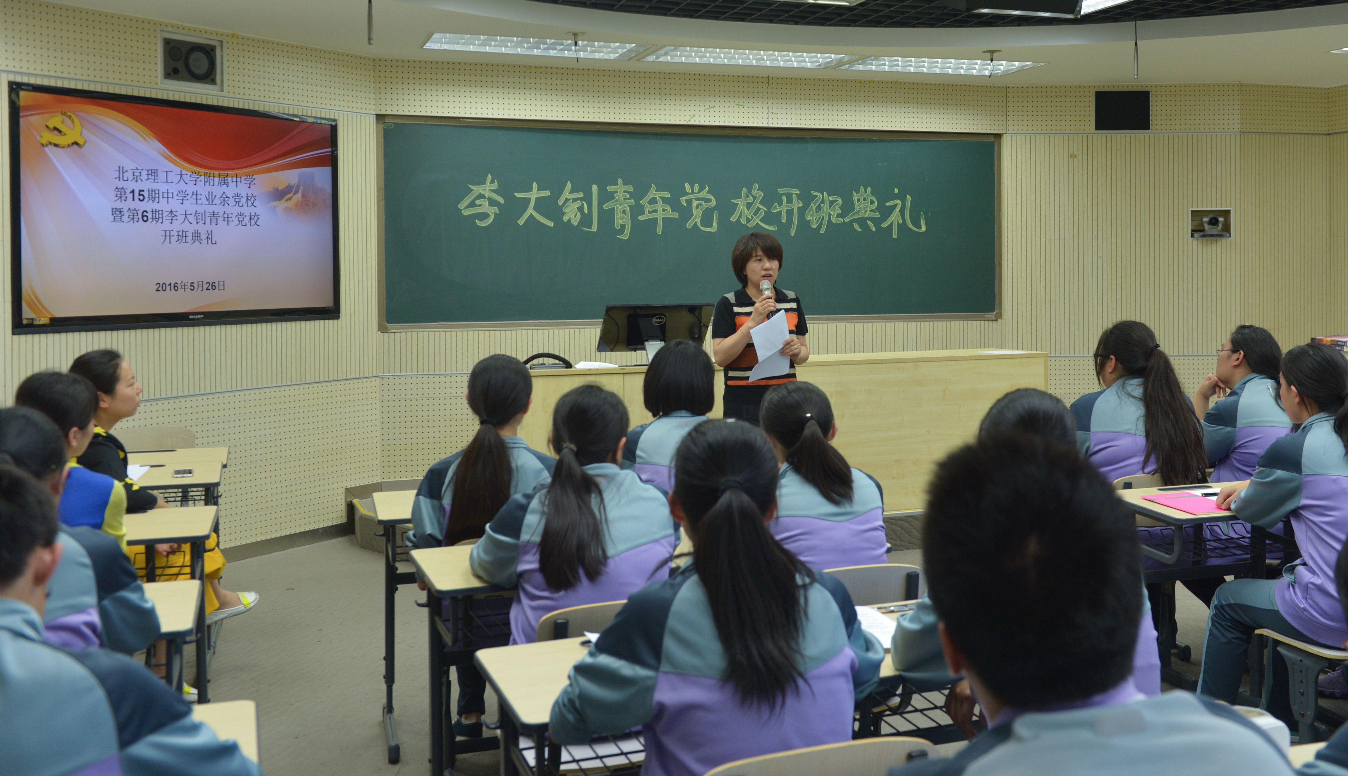 2016年5月26日中午,北京理工大附中第5期李大钊青年党校结业式暨第6期李大钊青年党校开班典礼在综合楼602教室举行,党委书记、李大钊青年党校校长赵欣参加典礼并讲话。