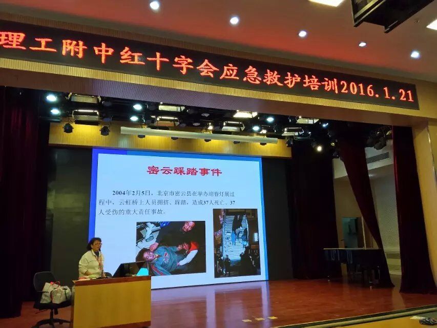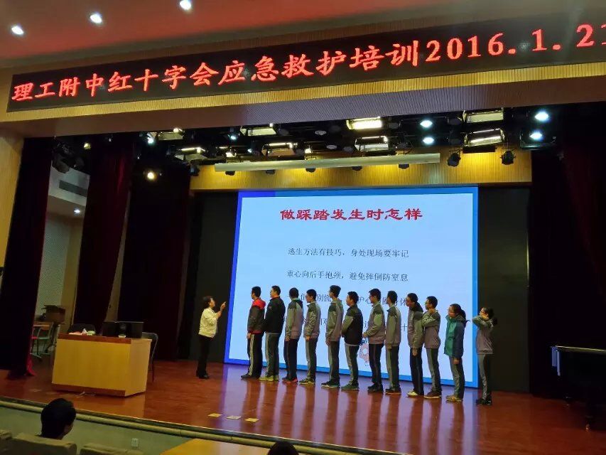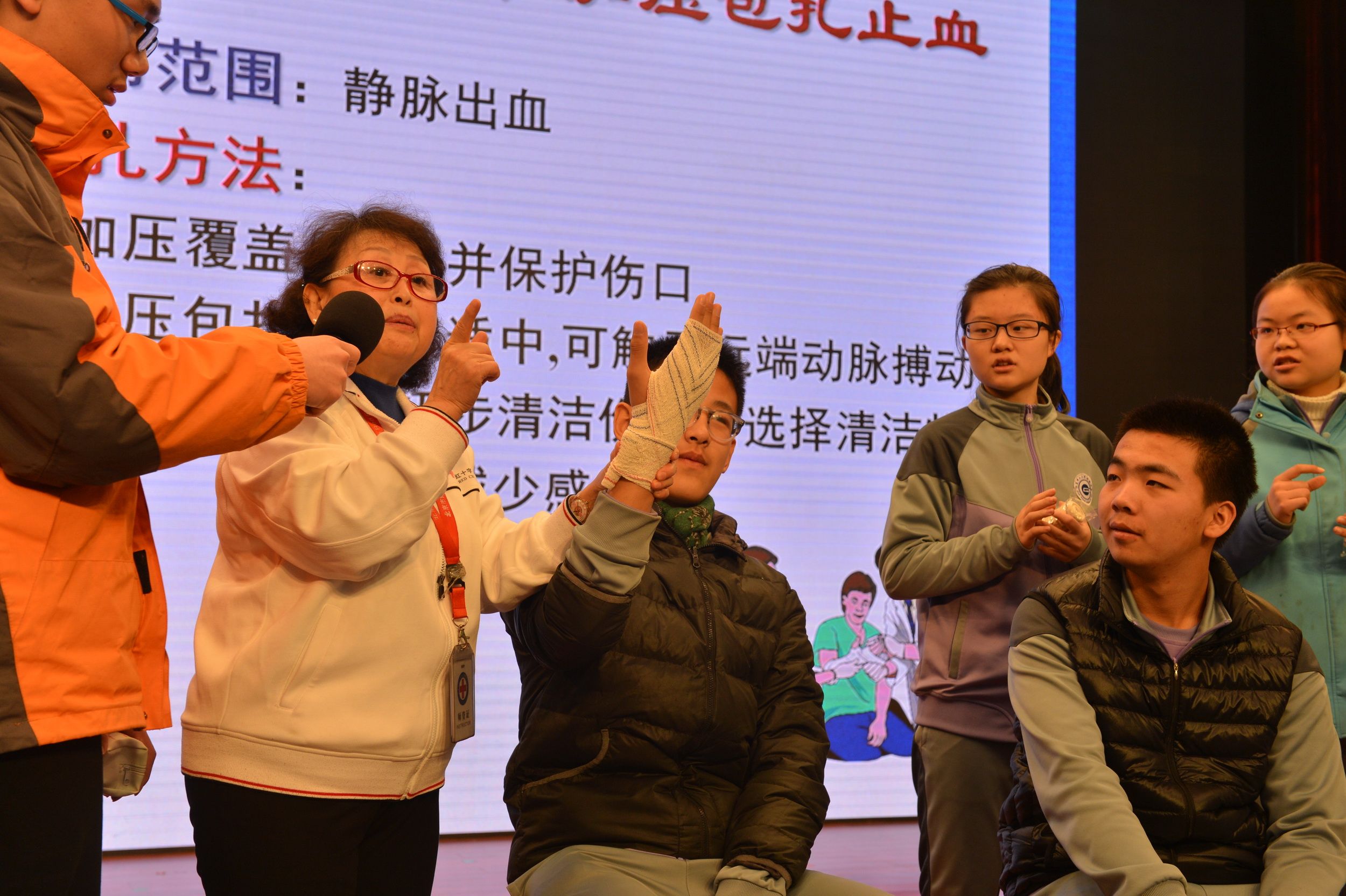 “世界急救日”的主题是“急救与日常及灾难中的危险”。我校围绕主题于2016年1月21日全天,邀请了海淀区红十字会资深讲师:赢奥老师,对高一年级全体师生及部分高二年级红十字青少年会员385人;老师13人;进行了突发应急救护普及理论知识培训及性应急救护培训,同时介绍心肺复苏的基本操作方法和一些简单的创伤包扎处理。