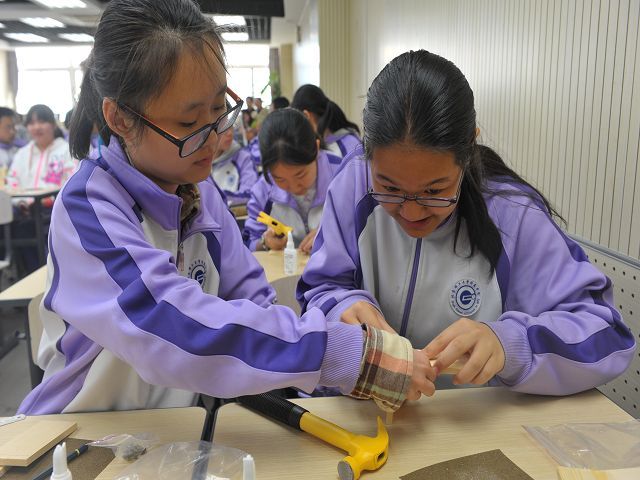 学生在制作储物盒