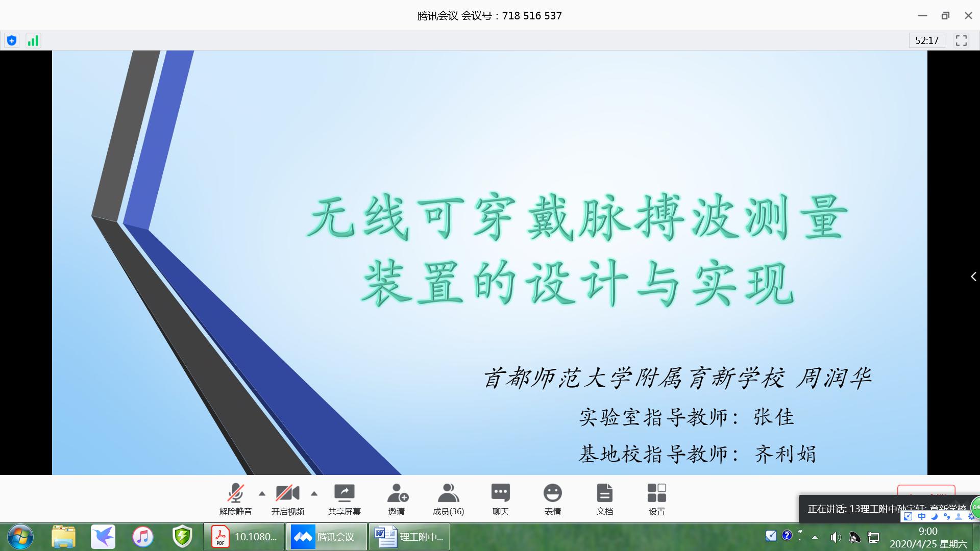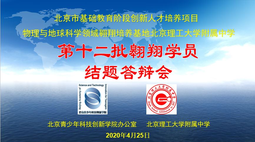 2020年4月25日上午,北京市基础教育阶段创新人才培养项目“翱翔计划”物理与地球科学领域培养基地北京理工大学附属中学第十二批翱翔学员结题答辩会以线上答辩的方式顺利举行。