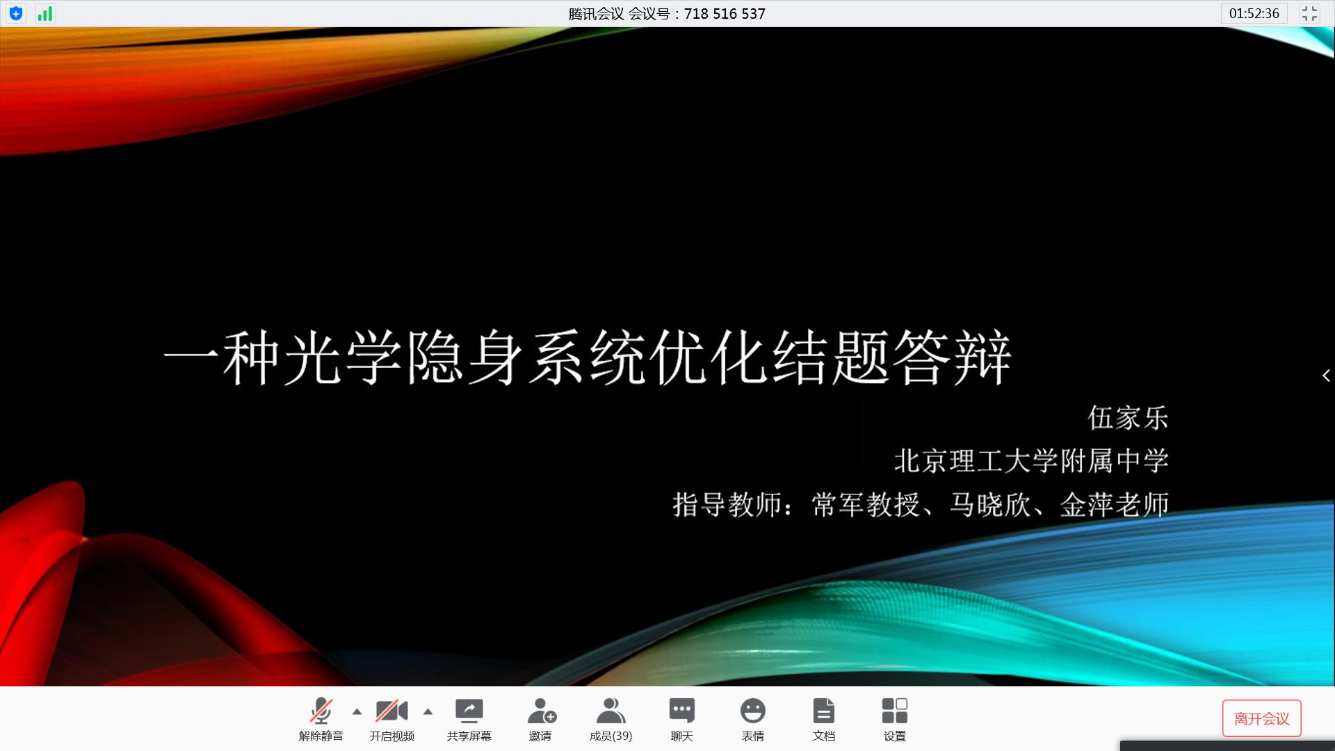 北京青少年创新学院张毅主任高度肯定了疫情期间北京理工附中团队在支持学员宅家探究方面做出的不懈努力。感谢各位专家悉心的指导和非常中肯的建议。今天七位学员准备充分,表现很精彩,希望学员们认真思考专家们提出的每一个问题和建议,不断完善课题,同时抓住这个特殊的宅家探究契机,潜心思考自己的研究。