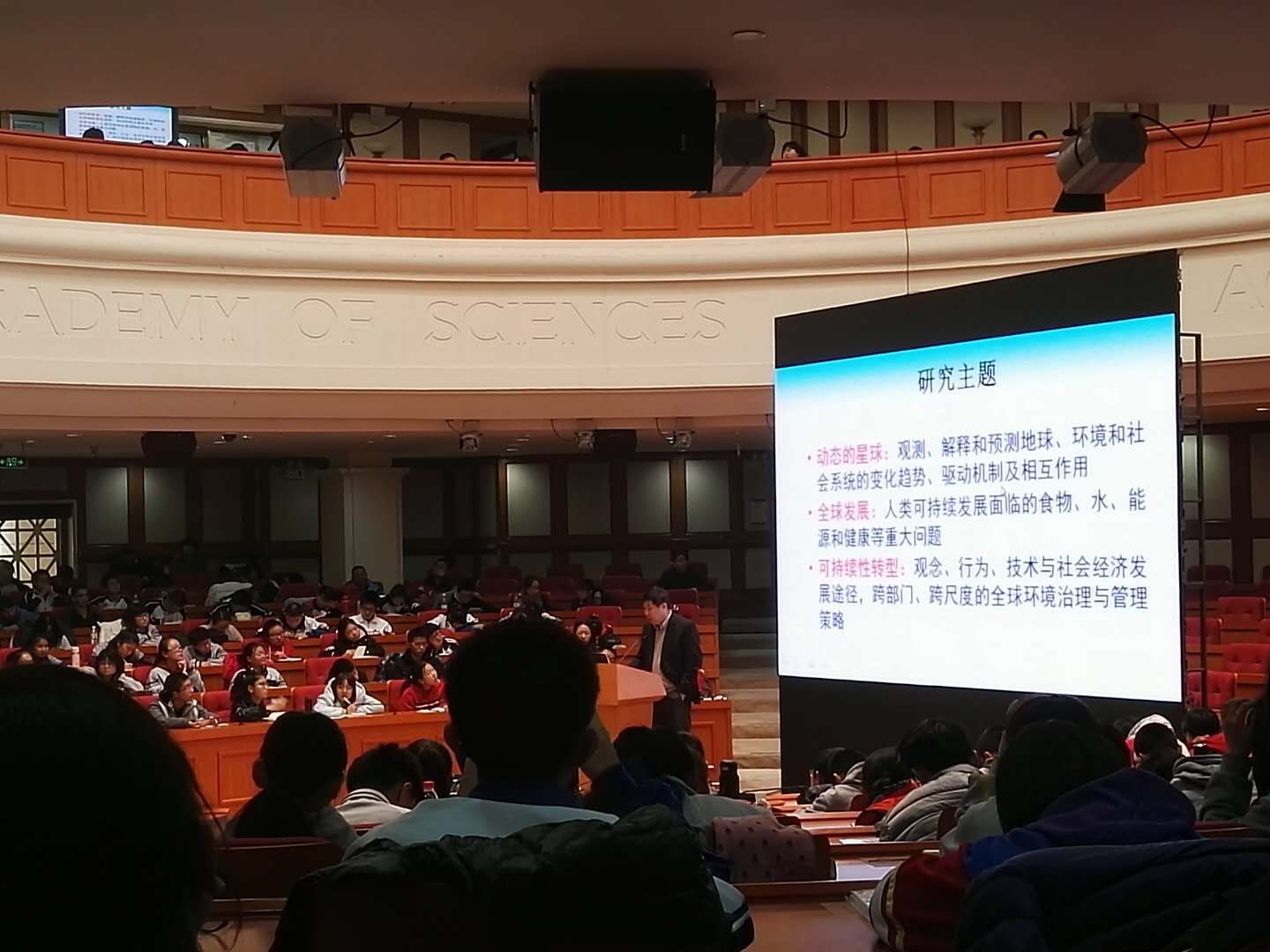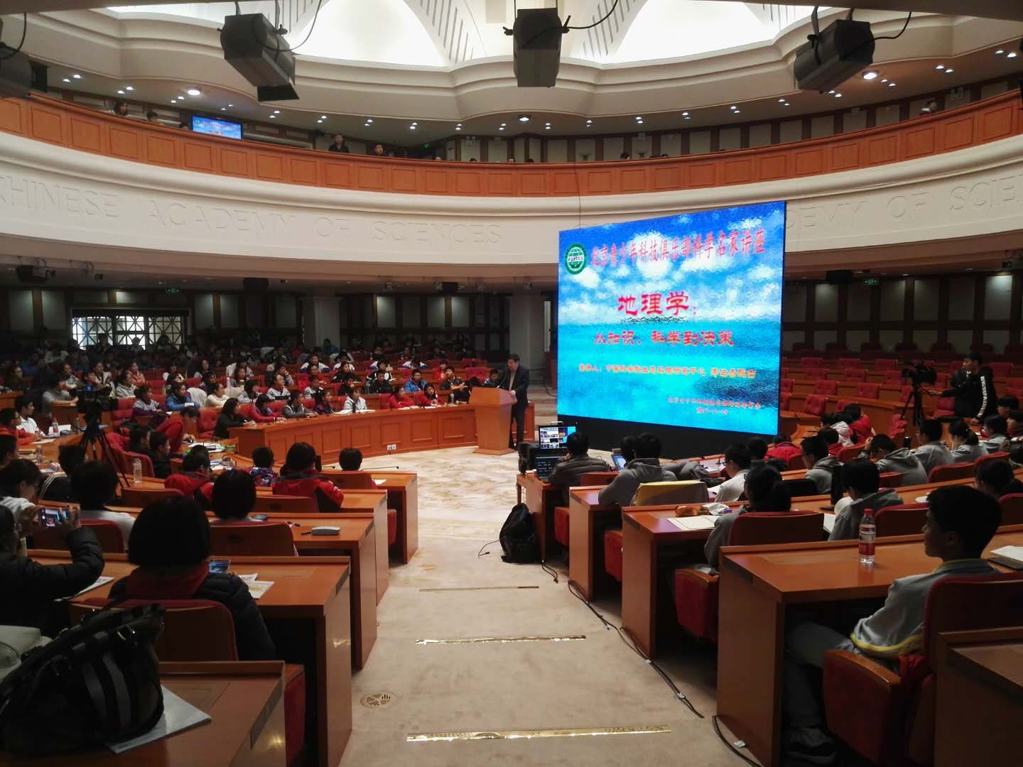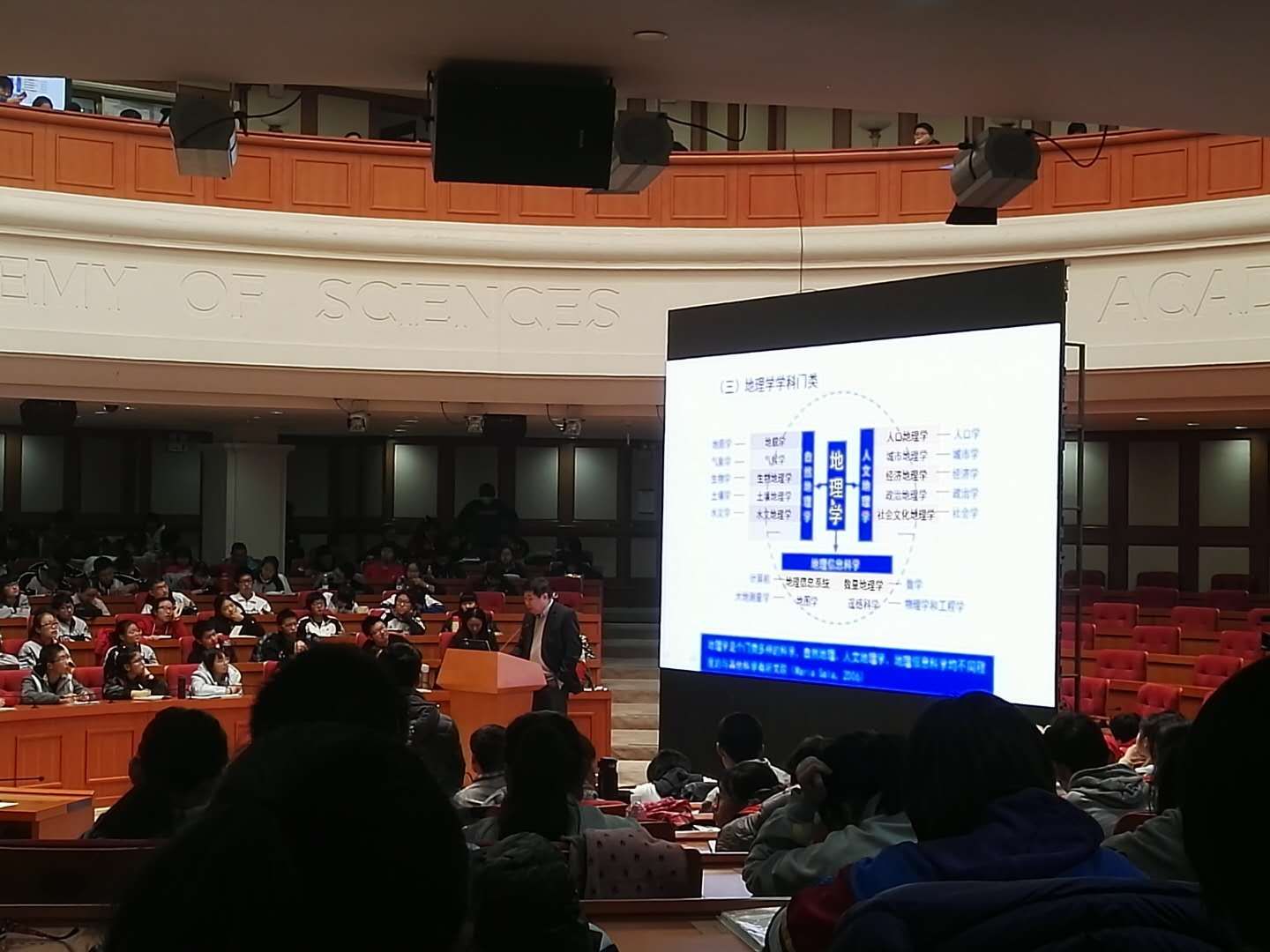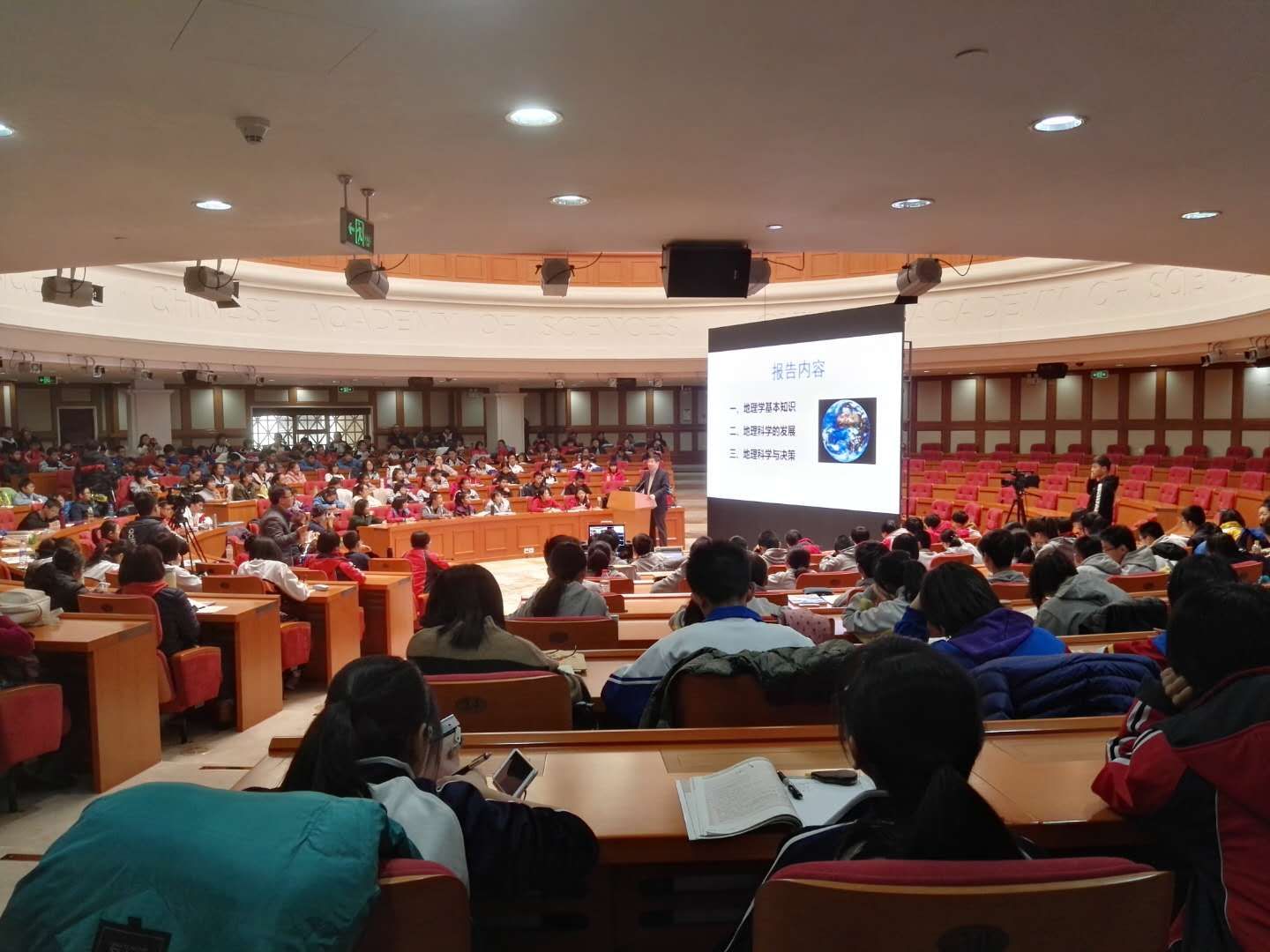 2017年11月19日上午,中国科学院院士、第三世界科学院院士、英国爱丁堡皇家学会外籍院士傅伯杰做客“科学名家讲座”为大家讲述了“地理学:从知识、科学到决策”。这项活动由北京青少年科技俱乐部举办,我校组织部分学生参加了本次讲座。
