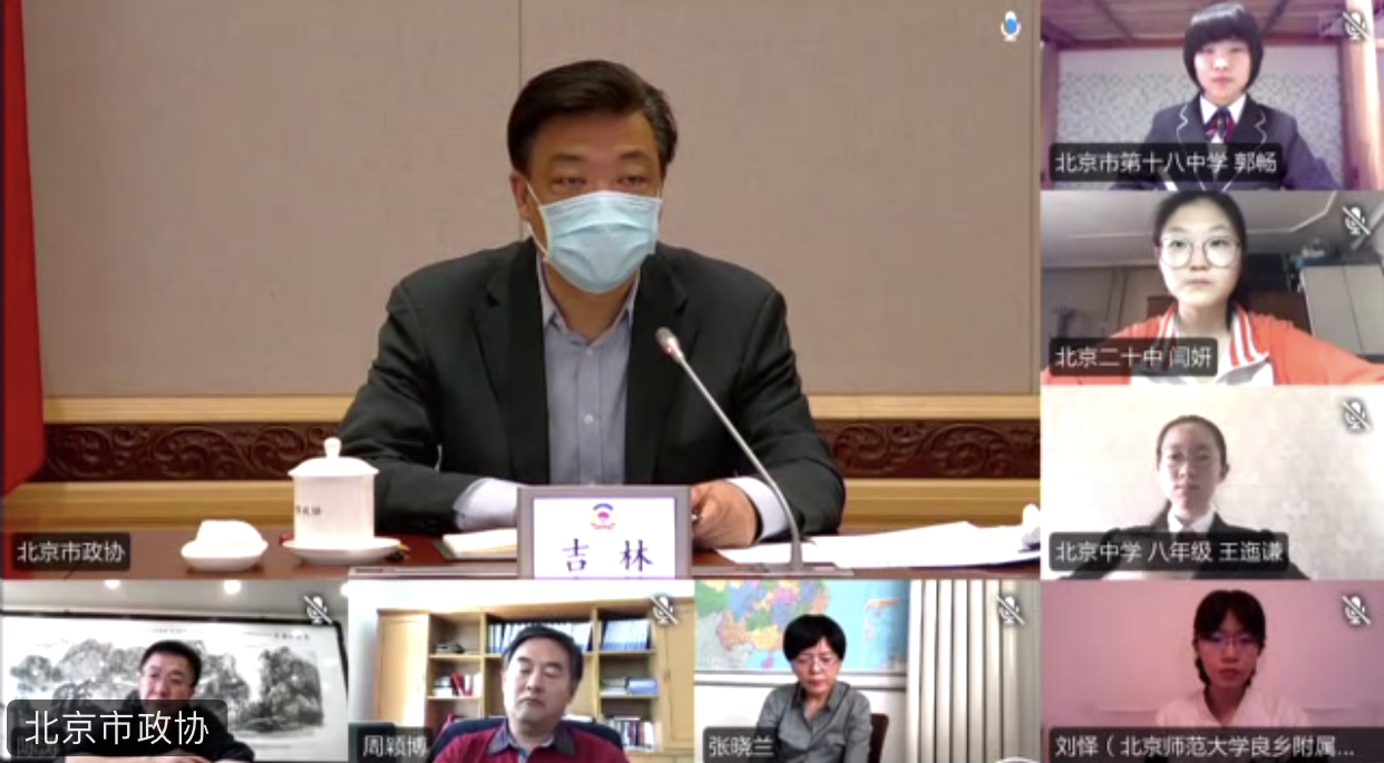 16区政协主席和市政协委员、部分区政协委员通过视频连线参会。在北京青少年科技创新学院统一部署下,我校特色发展中心带领模拟政协社团师生线上进行了全程观摩并开展了深入讨论。在社团指导老师王振环、安文娟、马千惠、李伟伟、纪晓丽老师的指导下,我校高一、高二近15名同学参与了本次活动。