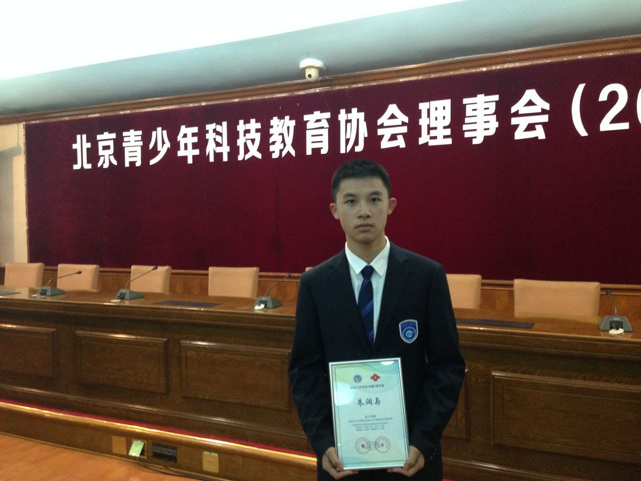 在2015年12月9日召开的北京青少年科技教育协会2015年理事会上,颁发了由日本住友化学(中国)投资有限公司出资、北京青少年科技教育协会组织专家评审的“住友化学奖学金”,我校第十四届青少年科技后备人才学员朱润与同学获此殊荣。