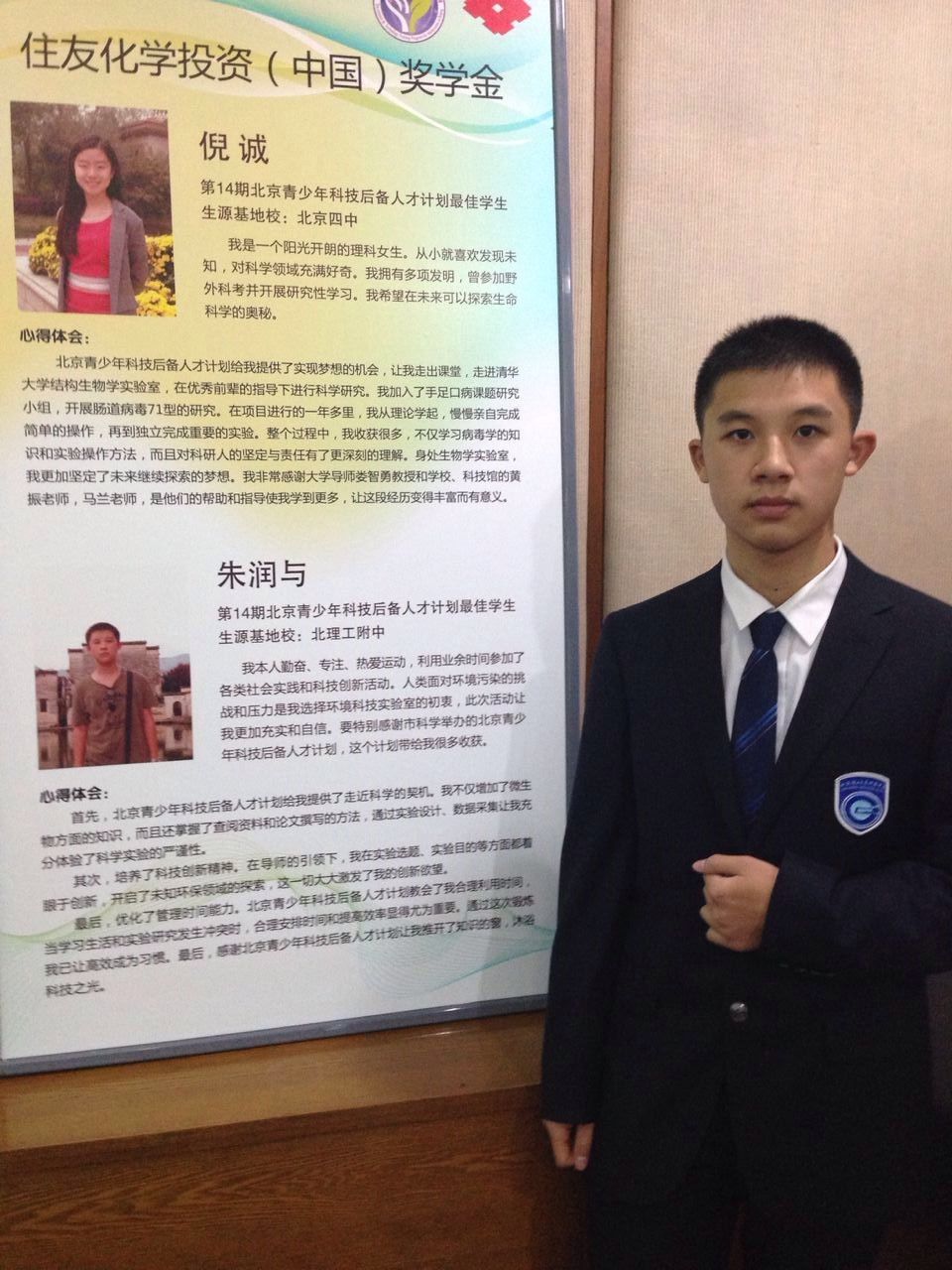 第14届青少年科技后备人才学员朱润与获得住友化学奖学金