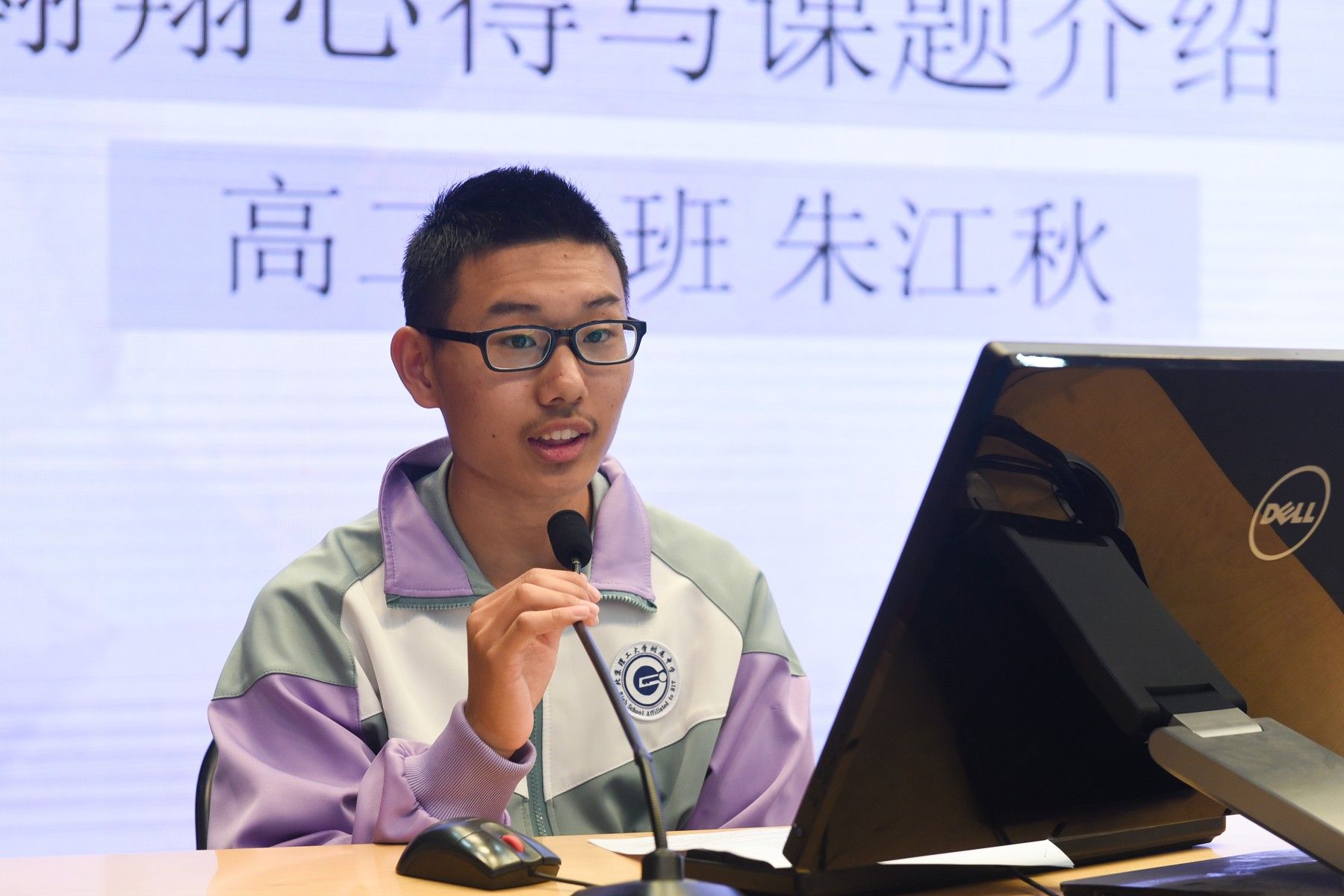 高二(12)班朱江秋同学作为第十一批翱翔学员,目前对接到北京农林科学院北京农业生物技术研究中心进行课题研究,他为大家分享了翱翔计划的一些经历、翱翔学员的日常、基地校丰富的科考活动,并汇报了课题《新转基因技术体系在矮牵牛上的构建》的研究进展。