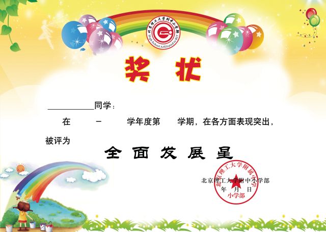 为了全面贯彻国家教育方针,建立良好的教育教学秩序,促进优良校风学风的形成,激励学生奋发向上、全面发展,提高育人质量,学校每个学期都将进行“星级好少年的评选,如:阅读之星、文艺之星、全面发展星等,在这些星级的评选中,全面发展星是对学生综合素质、全面发展的评价,也是星级评选中的最高荣誉,因此学生们对此项评选最热衷。