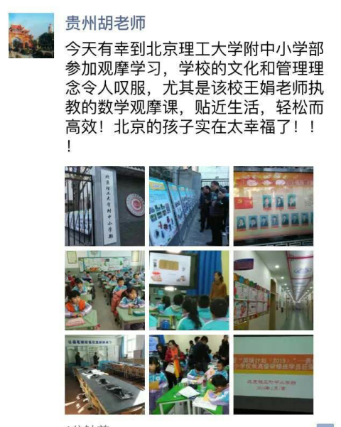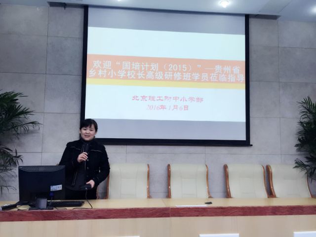 听课后,在理工附中报告厅,樊蓉校长介绍了小学部的办学理念和教师队伍建设情况,郝亚萍主任介绍了小学部课程设置与实施情况,发言后开诚布公与与会的贵州校长团成员们互动交流,得到北师大培训部带队主任的高度认可,对学校师生素质给予高度肯定,评价学校课程走在了课改的前沿,并希望今后能够再次走进理工附中小学部学习交流。