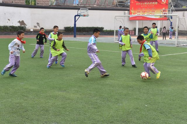 比赛中,各班班主任老师作为班级的领队和小队员们积极商讨,进行了排兵布阵,攻势此起彼伏十分火热。在较量中,运动员们始终以饱满的激情,昂扬的斗志,团结向上的精神投入比赛,虽然他们的技术还不够娴熟,配合还不够默契。但这并不影响场外观看比赛的同学们,他们呐喊、助威的热情一浪高过一浪,加油声此起彼伏,紧张激烈的赛场上,处处演绎着现代足球的激情与热烈。